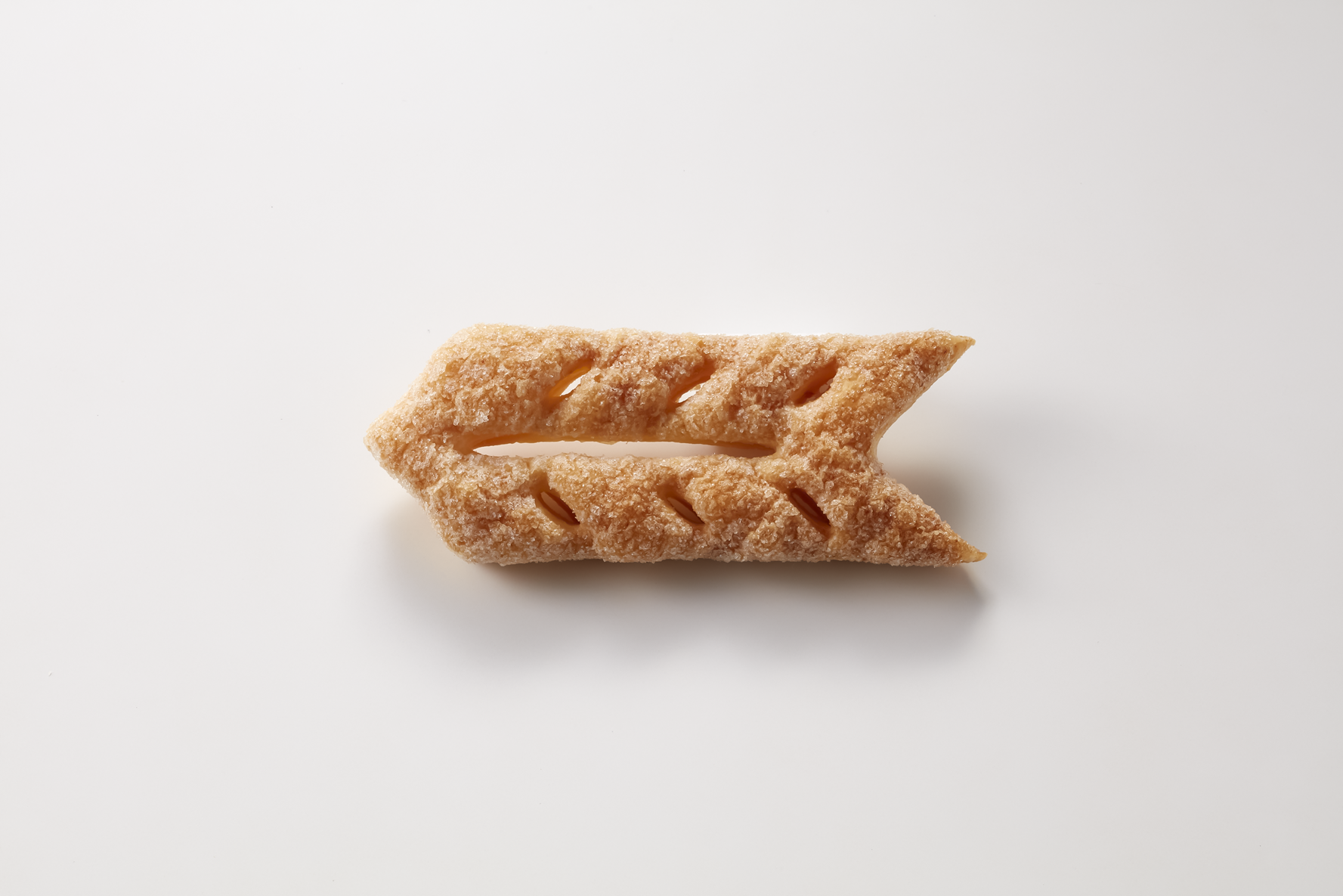 三日月屋のクロワッサン職人が、丹精込めて作ったリーフパイです。厳選された小麦・北海道産バター・天然海塩を使用し、熟練した職人が81層にバターを折り込み、ザラメを乗せてカリッと焼き上げました。一口頬張ればサクッとした食感と、バターの香りが口いっぱいに広がります。今までに無い新食感のリーフパイを是非ご賞味ください。